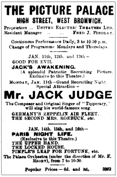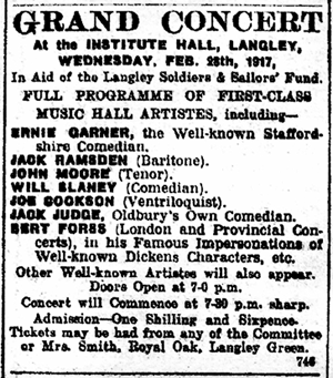 at a concert in September 1920 at the Brown Lion in Oldbury, where