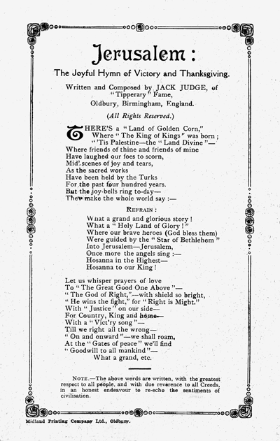 was the song, 'Jerusalem: The Joyful Hymn of Victory and Thanksgiving',